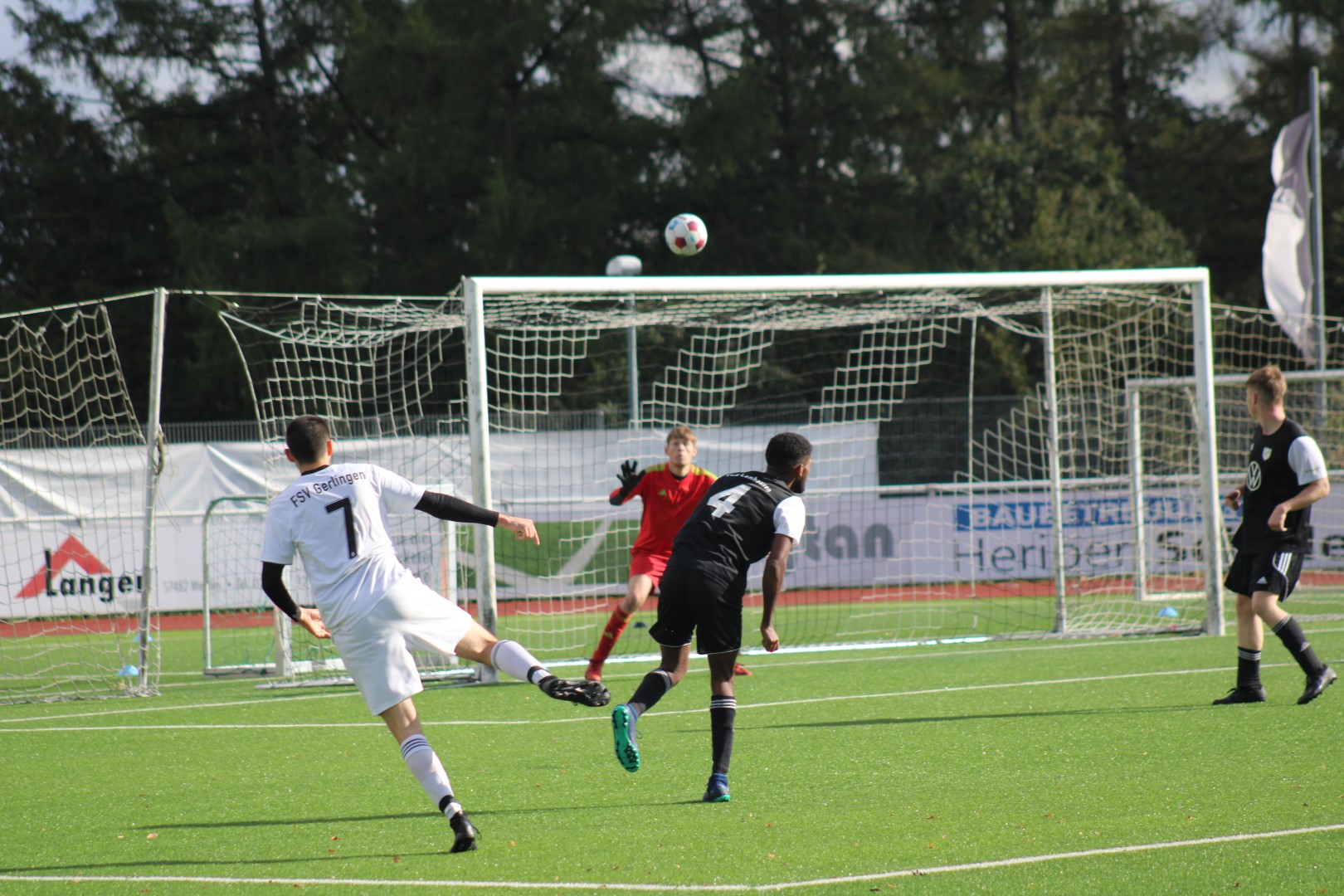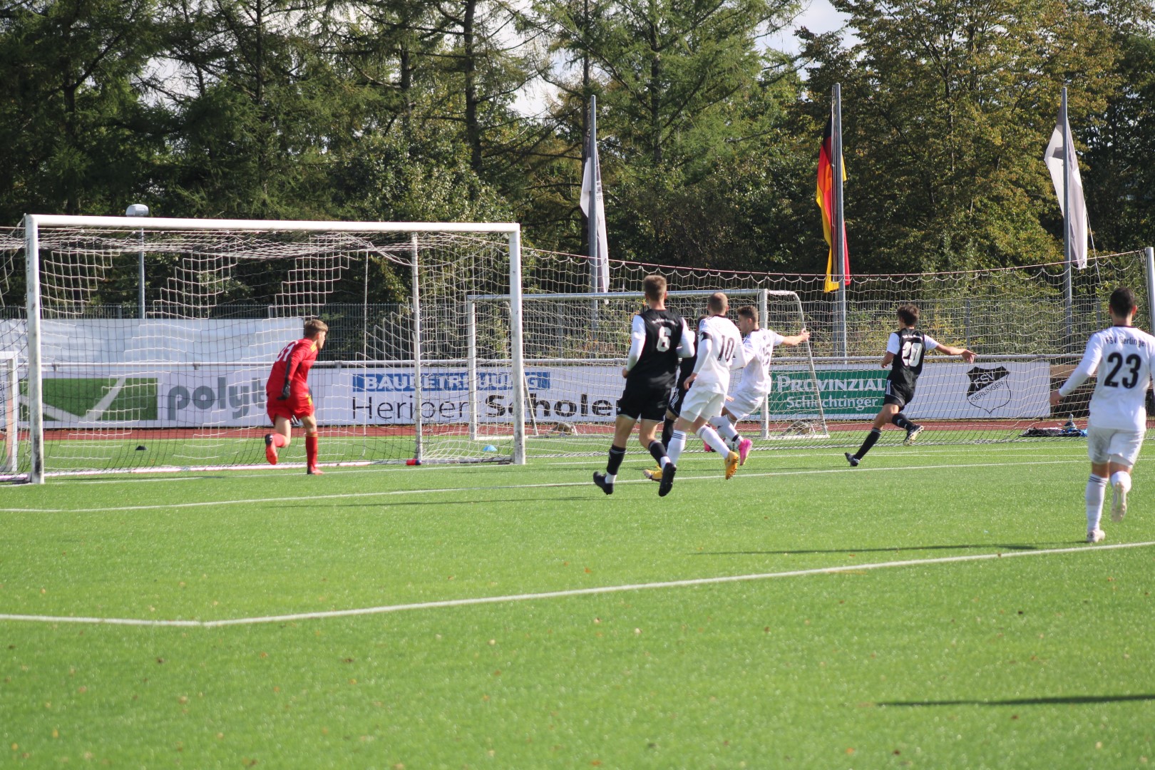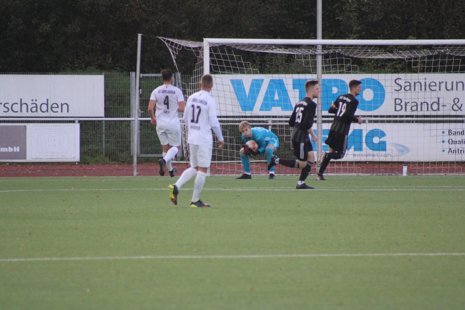 Dann lag der Ball doch im Tor des FSV, aber zum Glück für die Heimelf hatte der Schiedsrichter vorher ein Foul eines gegnerischen Stürmers geahndet und das Spiel abgebrochen. Das war knapp!