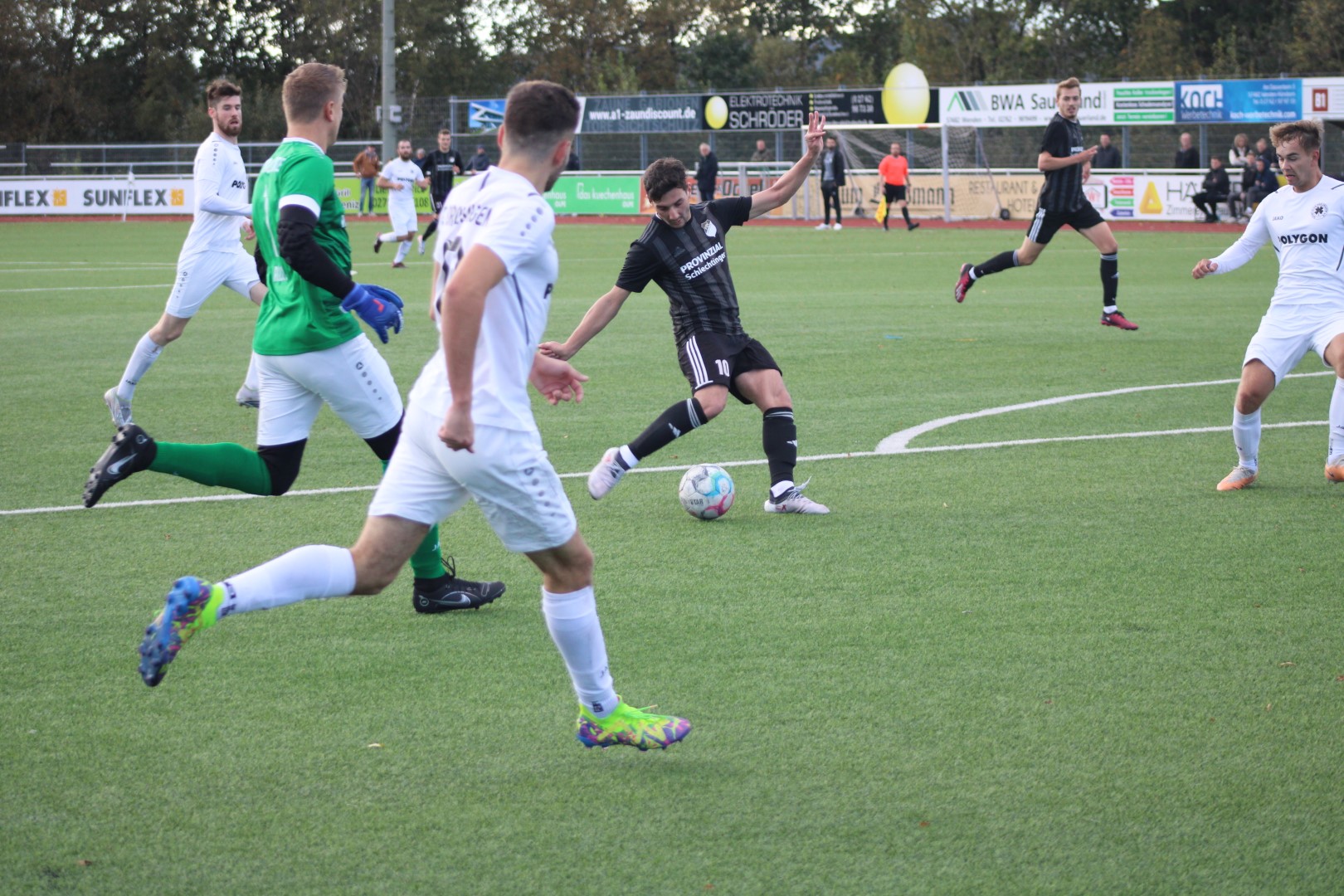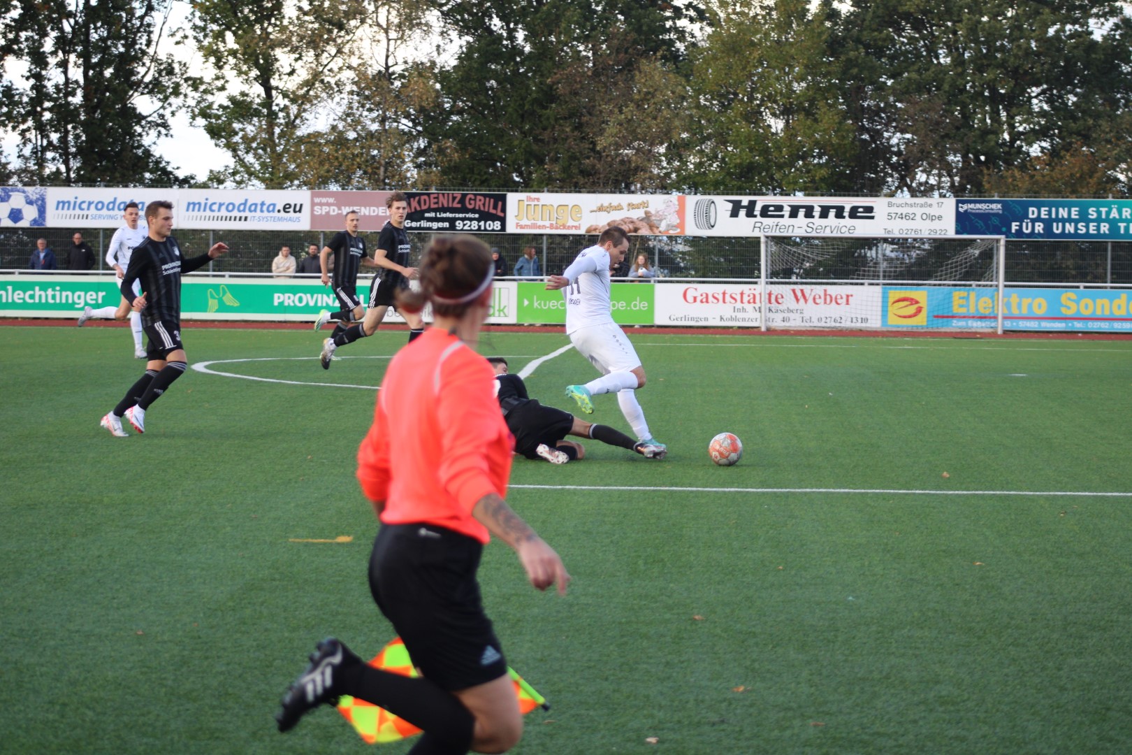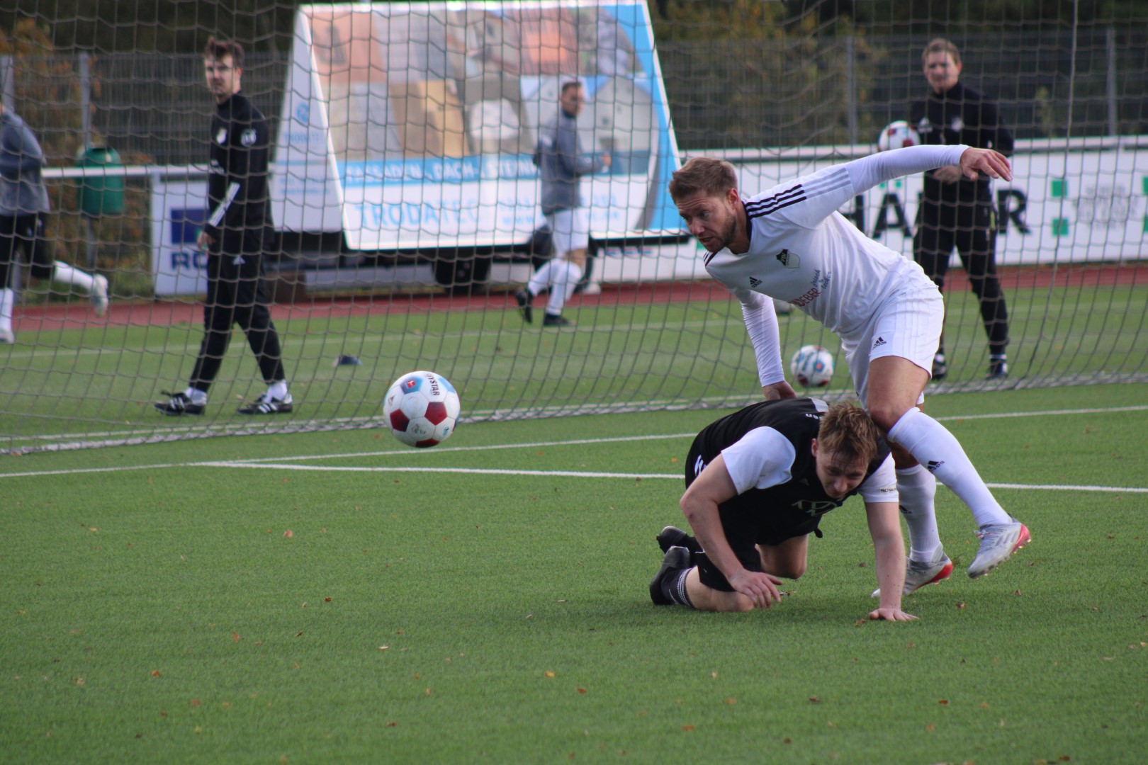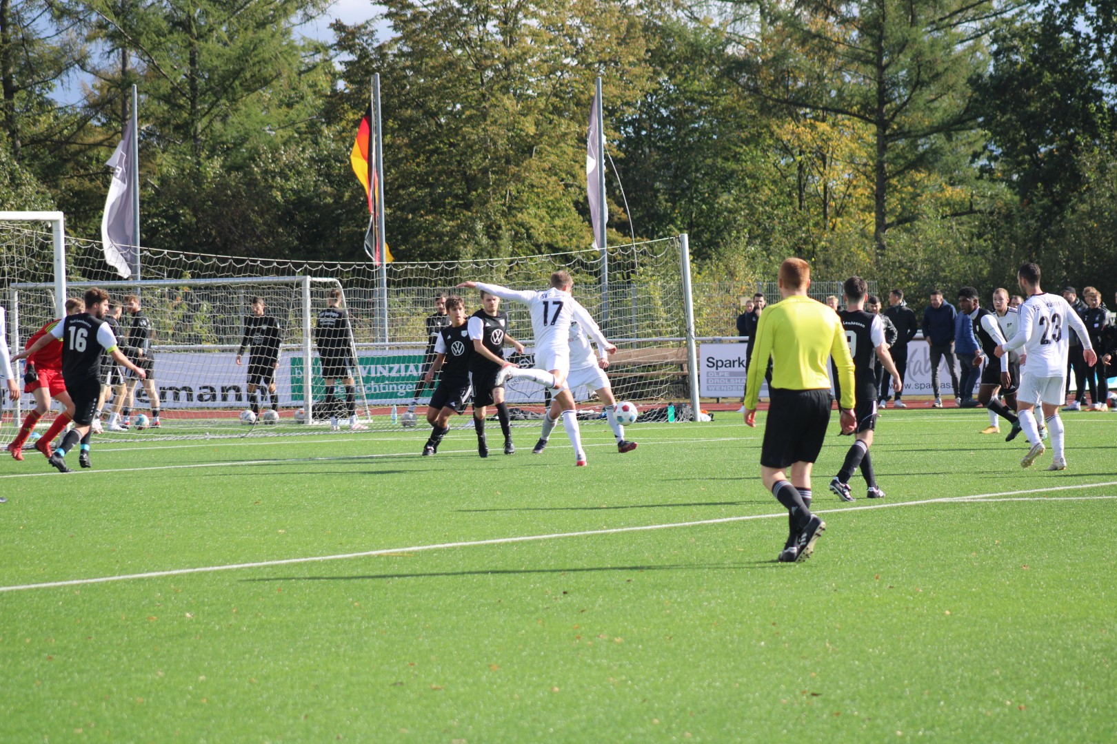Dann lag der Ball doch im Tor des FSV, aber zum Glück für die Heimelf hatte der Schiedsrichter vorher ein Foul eines gegnerischen Stürmers geahndet und das Spiel abgebrochen. Das war knapp!