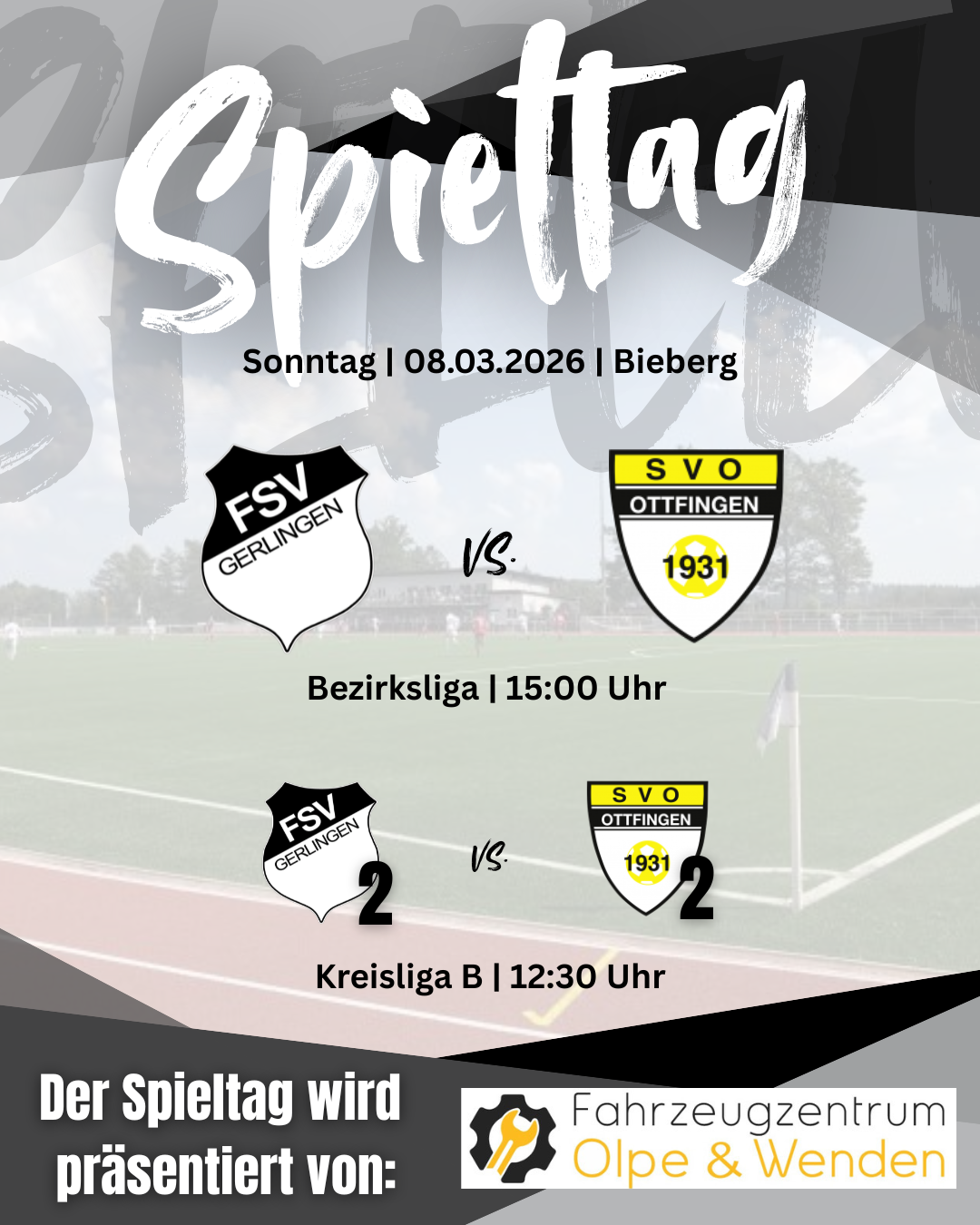 Der Spieltag wird präsentiert von Fahrzeugcenter Olpe & Wenden. Jetzt NEU auch in Gerlingen! 🚘