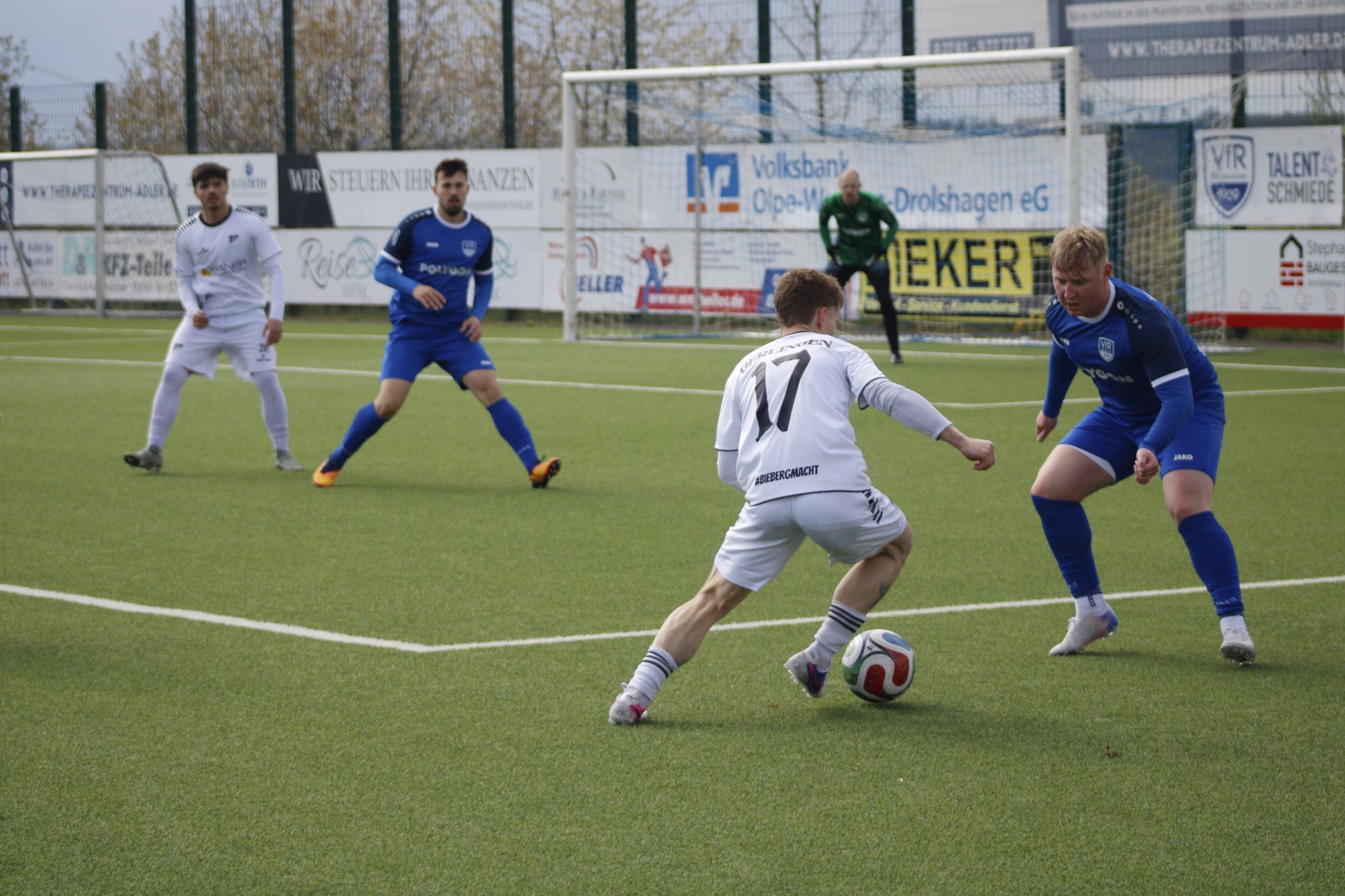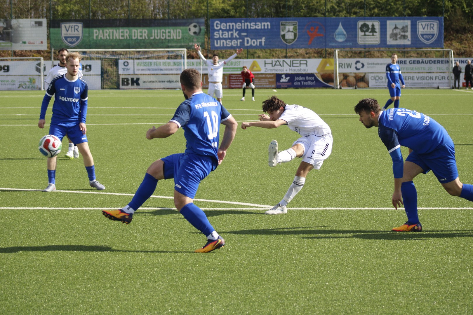 Die Biebergelf stand hinten kompakt und lief den Gegner früh an. Im Spielaufbau fiel den Gastgebern dazu nicht viel ein, außer lange Bälle auf ihre Sturmspitze zu spielen. Der Führungstreffer fiel dann nach einem Ballgewinn im Mittelfeld und einem energischen Vorstoß von Florian Schierz, der nicht angegriffen wurde und einfach mal abzog. Rüblinghausens Torsteher machte bei dem Schuss keine gute Figur und ließ den Ball zum 1:0 aus Gerlinger Sicht passieren.
